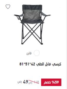- تسوق الان من اكسترا السعودية مستلزماتك المنزلية -كرسي قابل للطي بشكل انيق و هيكل قوى ، فى الكثير من الاوقات نحتاج الى كراسى زائده او مقاعد للجلسات الخارجية و الرحلات بالاضافة الى امكانية الطي لحل مشكلة الحمل او الازدحام ،الكرسي بمقاسات 42*51*81 ، السعر 49 ريال سعودى بدلا من 118 ريال سعودى خصم 59% .