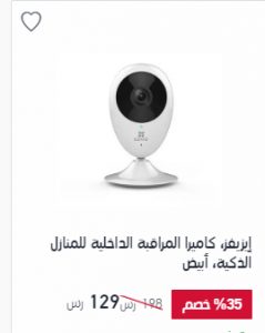 - تسوق الان من اكسترا السعودية مستلزماتك المنزلية – إيزيفز، كاميرا المراقبة الداخلية للمنازل الذكية ، حيث اصبح الان من اهم الاشياء هو تأمين منزلك حيث انتشرت حوادث السرقه و القتل و غيرها فاحرص دائماً على تأمين منزلك بكاميرات عالية الجوده بالاضافة الى سهولة استخدامها و حجمها الصغير و شكلها الانيق ، متوفره باللون الابيض الان ، السعر 129 ريال سعودى بدلا من 198 ريال سعودى خصم 35% .