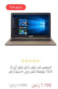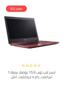 • يعد اللابتوت من اهم الاجهزة الالكترونية الذكية التى تساعدنا فى اعمال كثير منها الكتابة و منها البرامج و الانترنت و غيرها لذلك يعد هذا الاختراع لا غنى عنه لذلك وفر لكم متجر الصندوق الاسود لابتوب باسعار مخفضة و منها الآتى – ايسر لاب توب A315-33-P2B1 يتميز بشاشة بمقاس 15.6 بوصة و متاح باللون الاحمر المميز ،اللابتوب  بسعة تخزين 1 تيرابايت بالاضافة الى رامات 4 جيجابايت ، السعر 849.00 ريال سعودى بدلا من 1099.00 ريال سعودى و خصم 22% .