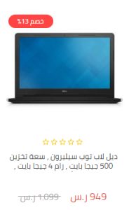 • لا تفوت الفرصة و سارع لشراء لابتوب بماركة ديل الشهيرة و الموثوقه و ديل لاب توب سيليرون باللون الاسود ملك الالوان و بدون نظام تشغيل و سعه القرص الصلب 500 جيجا بايت برقم موديل Inspiron 3573 و سرعة معالج 1.6 جيجاهرتز و معالج انتل سيليرون و رامات 4 جيجابايت ، السعر 949.00 ريال سعودى بدلا من 1099.00 ريال سعودى و خصم 13% .