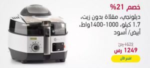 - اشترى احتياجات منزلك اونلاين من اكسترا السعودية -ديلونجي، مقلاة بدون زيت ، تسعى النساء دائماً الى طهى الاكل بطريقة صحيه لها و لاسرتها لان هناك عادات كثيرة خاطئه تضر بصحتنا و تعرضنا للامراض من ضمنها السمنه و السكرى لذلك احرصى دائماً على طهى الاكل بطريقة مميزة و لذيذه و صحية ايضاً للمحافظة على عائلتك من الامراض و من ضمنها الطعام المليئ بالزيوت و الدهون ، و لكن اكسترا السعودية تجد لكى الحل الامثل من خلال مقلاة الطعام بدون زيوت 1.7 كيلو و تعمل بقوة كهربائية 1000-1400 وات ، السعر 1249ريال سعودى بدلا من 1579 ريال سعودى بخصم 21% .