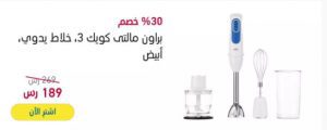 - اشترى احتياجات منزلك اونلاين من اكسترا السعودية – براون، مالتى كويك 3 ، من اهم الاجهزة الصغيرة فى المطبخ هى الخلطات و ذلك لاننا نستخدمها دائما فى تحضير كافة الاطعمه و المشروبات و لكن ليس كل الخلطات تكون سهلة الاستخدام لذلك نقدم لكى مالتى كويك خلاط يدوى سريع و سهل الاستخدام بسعة 600مل و قوة كهربائية 700وات و شفرتان ، السعر 189ريال سعودى بدلا من 269 ريال سعودى بخصم 30% .