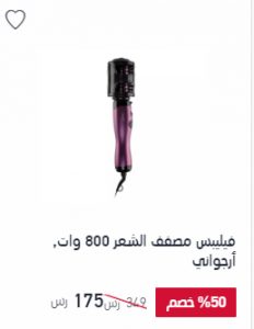 - اشترى من اكسترا السعودية كل مايهم جمالك -فيليبس مصفف الشعر ، كلنا نعلم ان الشعر هو تاج جمال المرأة لذلك تسعى النساء دائماً على الحصول على شعر جذاب و ناعم و معالجة كافة مشكلاته و من اهم الامور التى يجب عليكى الحرص فى شرائها فى سلع تصفيف الشعر فيجب اختيارها بعناية للمحافظة على شعرك من التلف ، و مع فرشاة فيليبس لتصفيف الشعر انتى فى آمان فهو يحافظ على لمعان و نضارة شعرك مع ابقاءة مصفف لفترة اطول ، يتميز بسرعه 800 وات ، الفرشاة انيقة باللون الارجوانى الجذاب ، السعر 175 ريال سعودى بدلا من 349 و خصم 50% .
