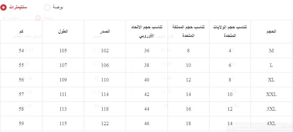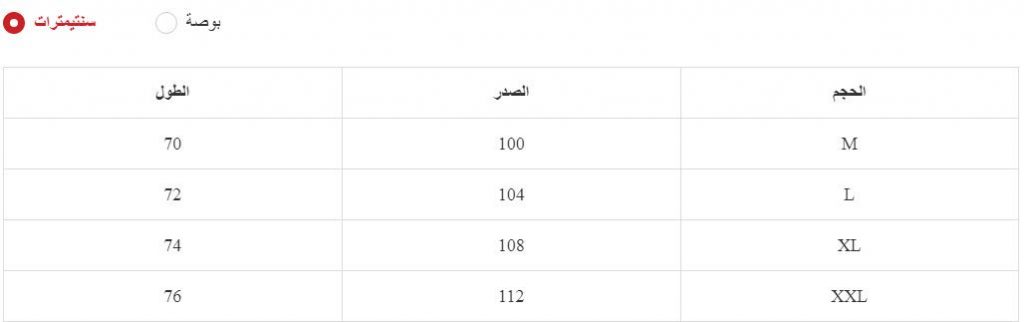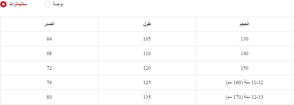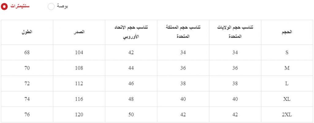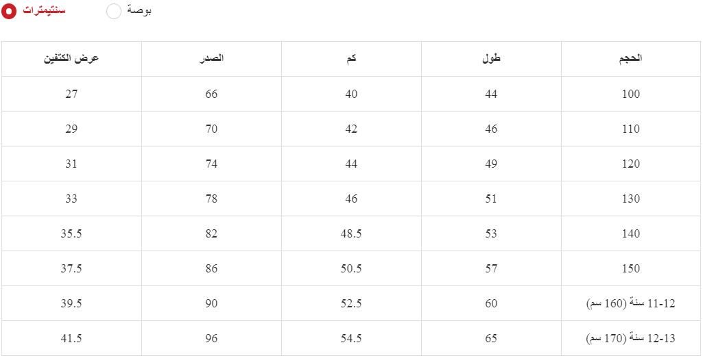 • الجاكيت النسائي تقاس بالسنتيمتر.
