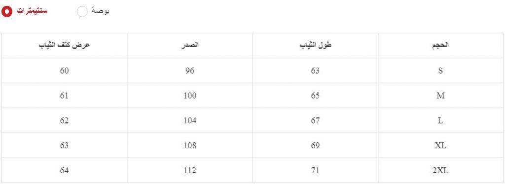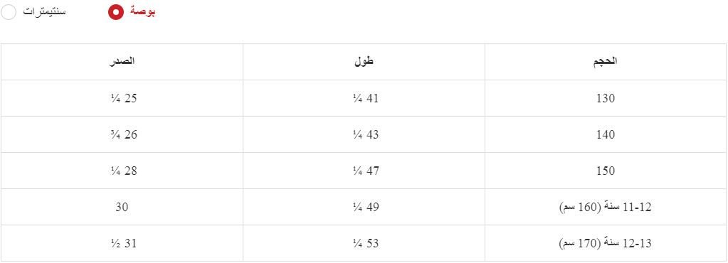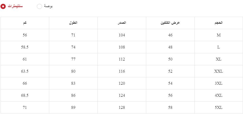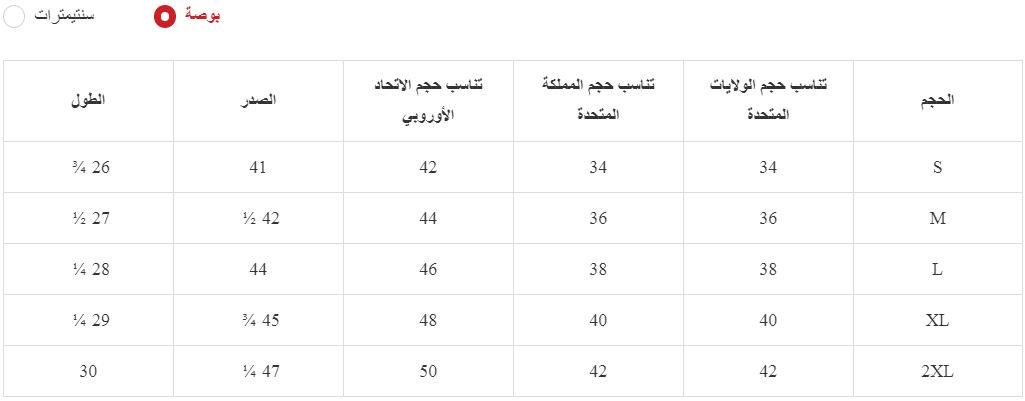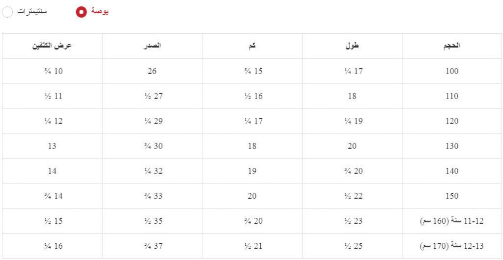 • الجاكيت الرجالي يقاس فقط بالبوصة.