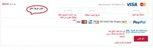 الدفع عند الاستلام ، الدفع عن طريق الباي بال ، الدفع عن طريق بطاقة الائتمان( فيزا كارد- ماستر كارد ) ، الدفع عن طريق أبل باي .